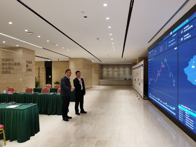 座谈会前,赖晓明陪同顾春华参观了上海环交所全国碳市场展示大厅,详细介绍了上海环交所发展历程、市场建设、五大平台、“双碳”服务、碳金融创新、国际交流等核心业务,并现场体验了个人交通碳排放核算系统。